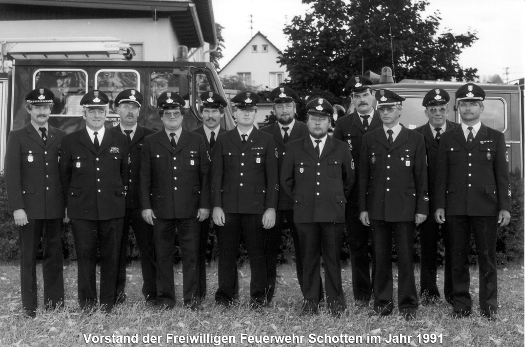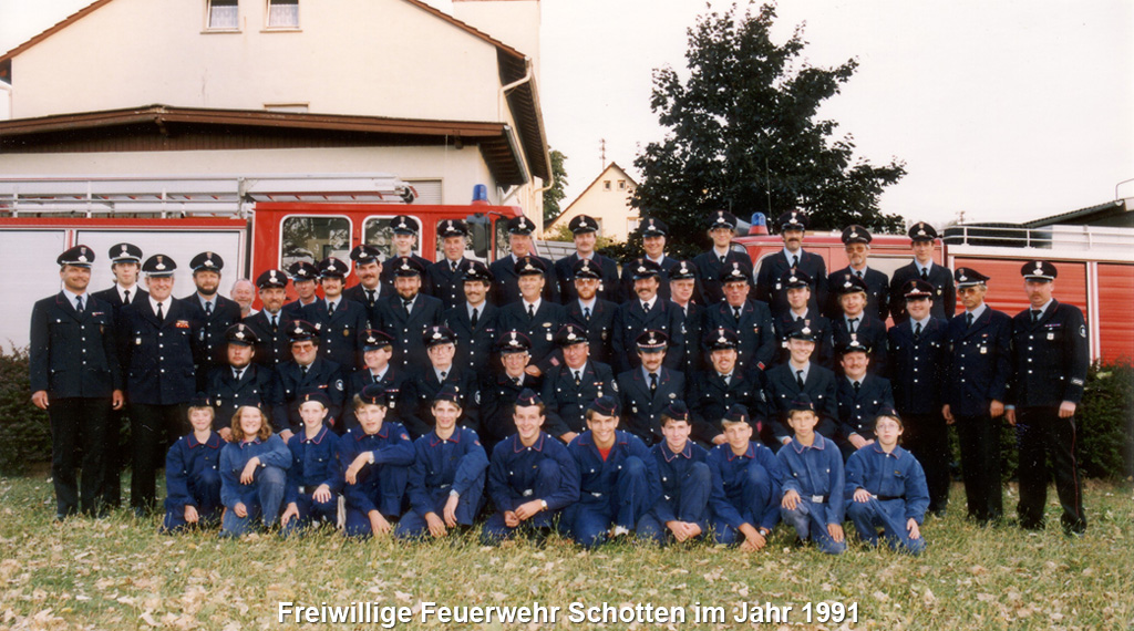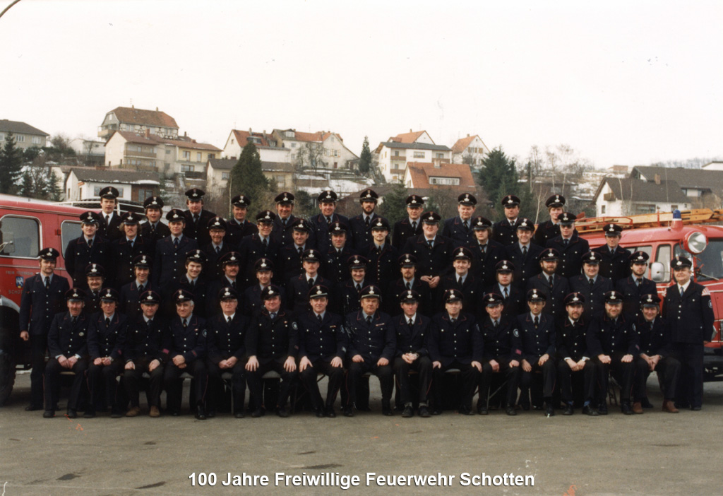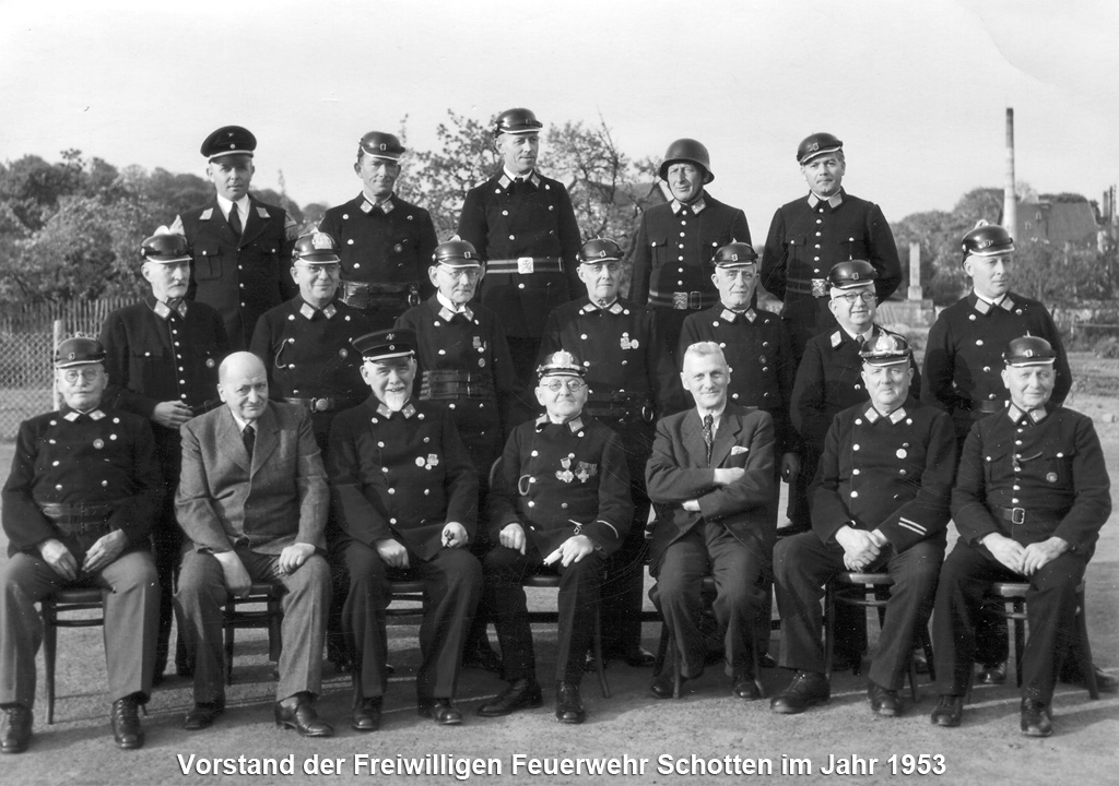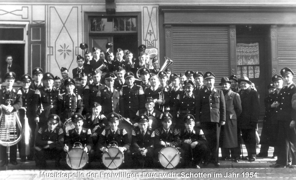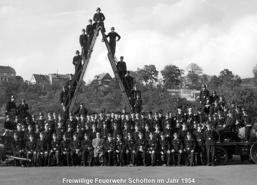 1954 feierte man unter der Führung des Kommandanten Otto Stang, der allein 25 Jahre lang die Geschicke der Wehr prägte, das 75 jährige Jubiläum. Zu dieser Zeit besaß die Schottener Feuerwehr auch noch eine eigen Musikkapelle, die eng mit dem Schottener Musikverein kooperierte.